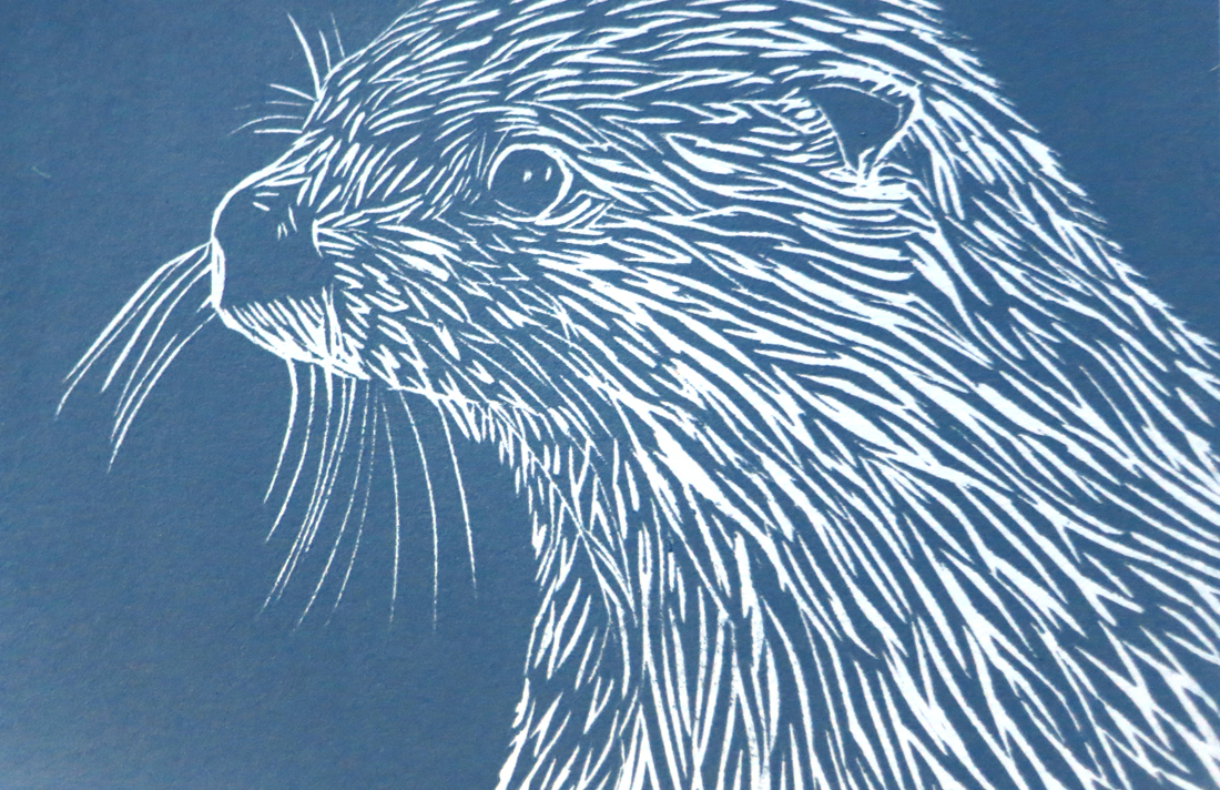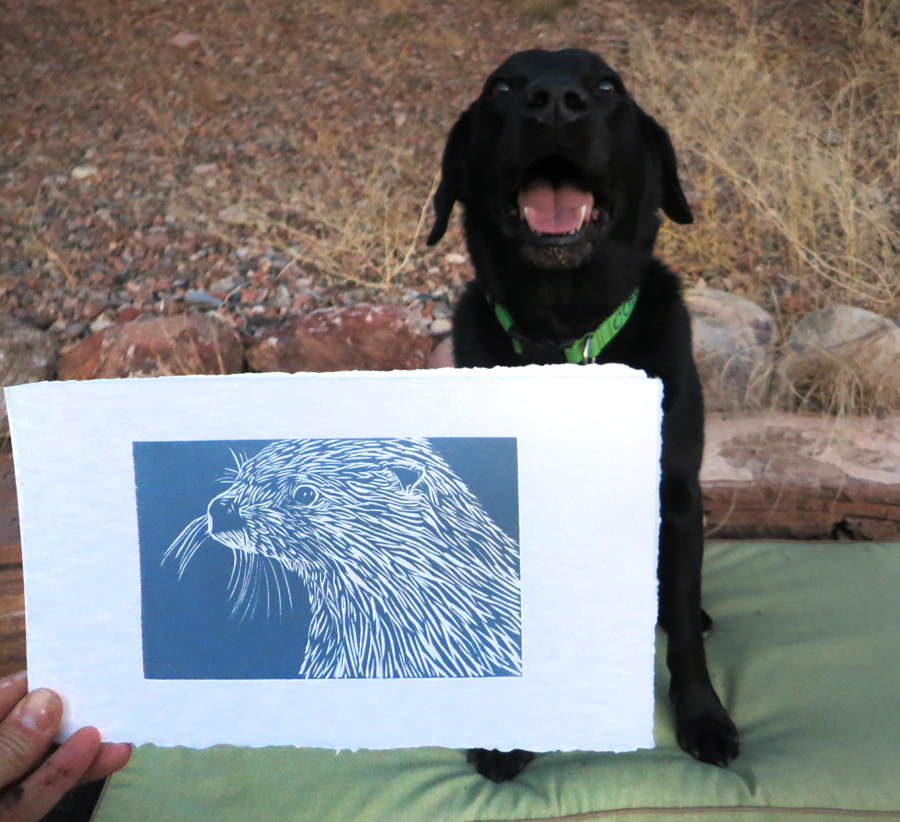 I will keep tonights post short, sweet and very cute. The height of cuteness, this steely grey river otter. This is the first proof off the press and it is looking really good. Even Conrad, my 7 year old Labrador approves, he has a tail like an otter.