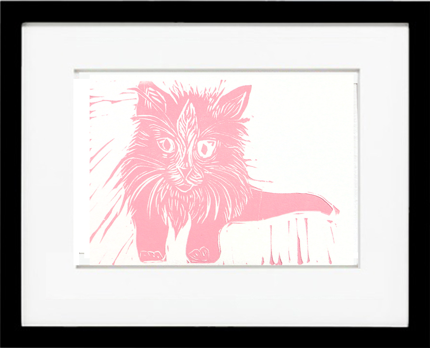 This kitty is silly, and pink. Why pink? I am not sure but we all need some ridiculousness every now and then. Pink Kitty is on Stonetrigger Press Etsy for $20, there is an edition of 10. She is 4″ x 6″ on an 8″ x 10″ Rives BFK paper.