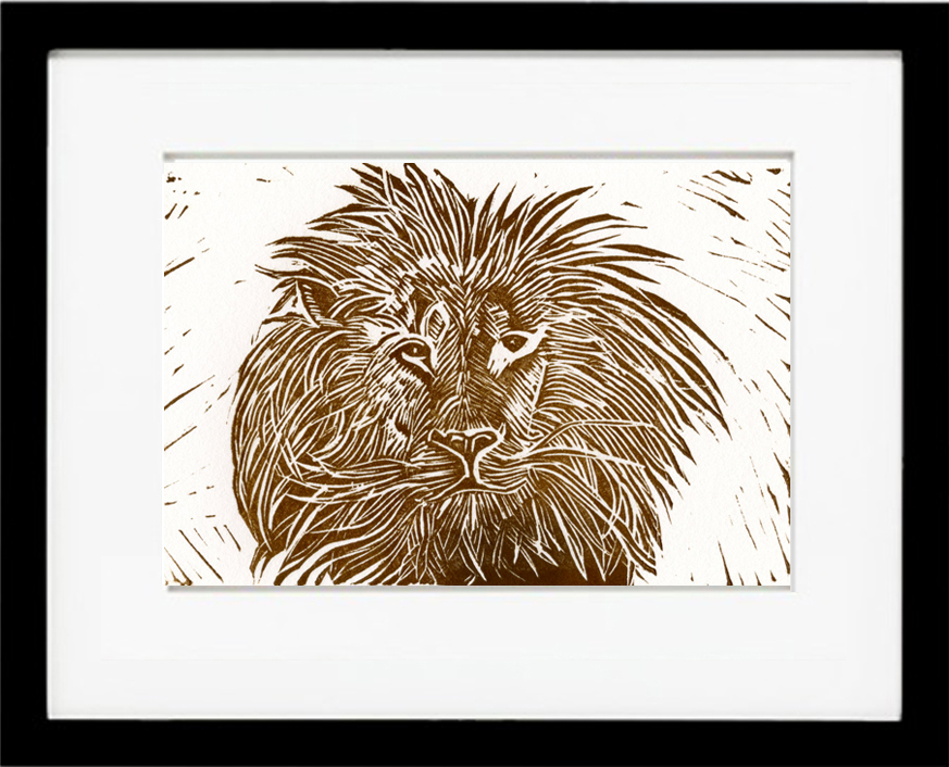 I continue to carve my spirit animal of the week, along with all kinds of other animals, birds and fish during the week. The habit of printing and carving on Mondays, spilled over into every day of the week and I created a small business of selling the prints. This week my animal is the Lion. The edition of 10 is currently on Etsy and available until the 10 sell out. If you want to see more of the 11″ x 14″ watercolor collage drawings you can click here: