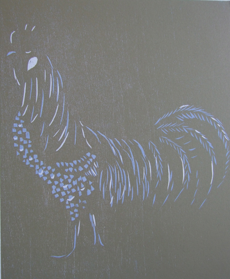 I am working on two other chicken prints as well, here are photos of the first and second colors for the Blue Andalusian chicken.