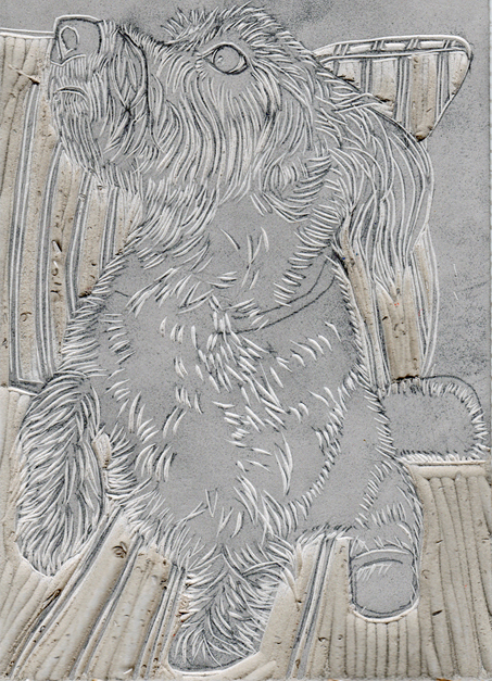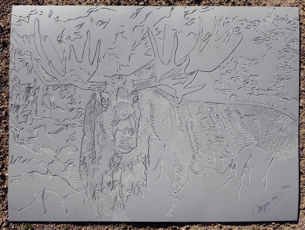 I just returned to my cute Adirondack motel room after an 11 hour day of cutting and placing linoleum block prints into an installation, I titled the show “My Own Private Wilderness”. I have 2.5 more days to complete it and I am a bit nervous. Day one is always slow but today seemed extra slow. It is the first time I am building water. I was at a loss on how the land meets the water, but thankfully Lake George is right outside the window, the beautiful mountains in the background giving me a direct reference.