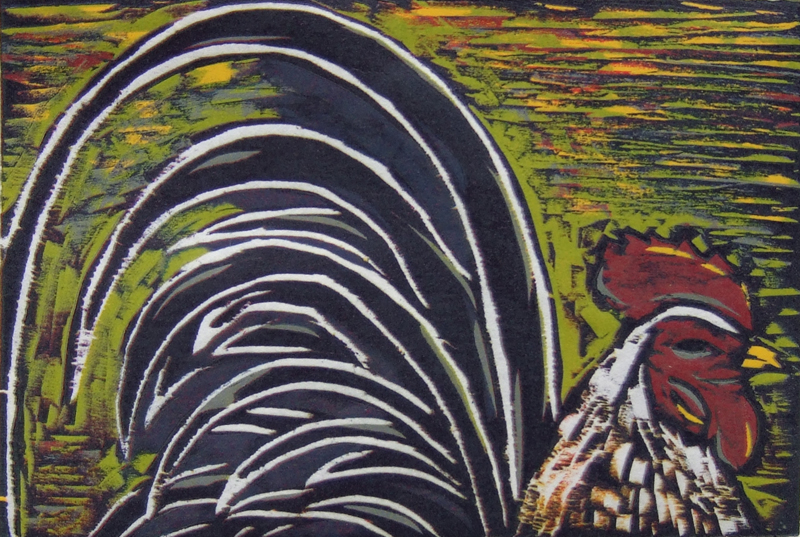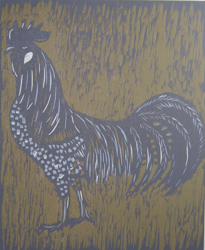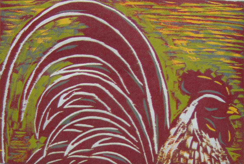This is how the linocut looked when I first printed it. I made one print, then carved a bit more, made another, printed again. I generally make 3-4 “proofs” that is seeing what it looks like, cleaning the block, inking it again and reprinting until I get what I want. On bad days that can take up to 10 separate inking, printing, cleaning, carving inking, etc.