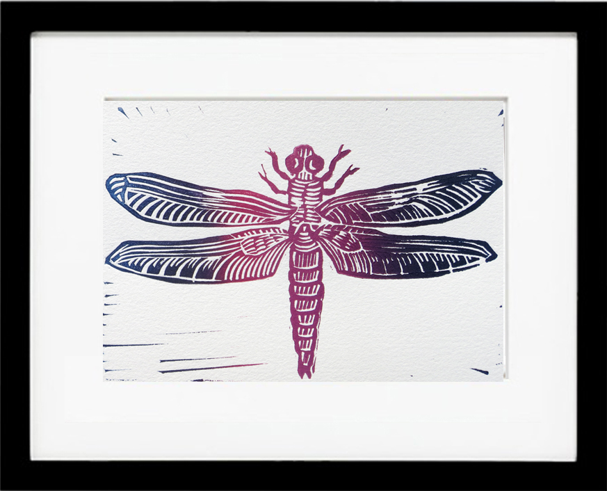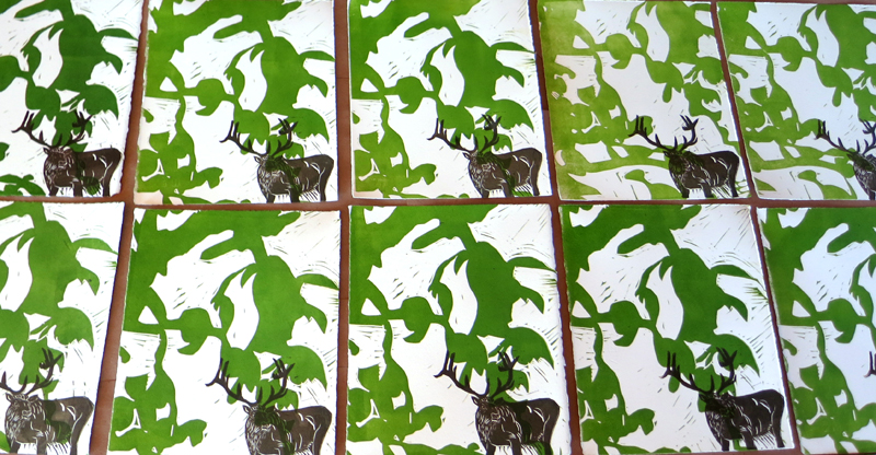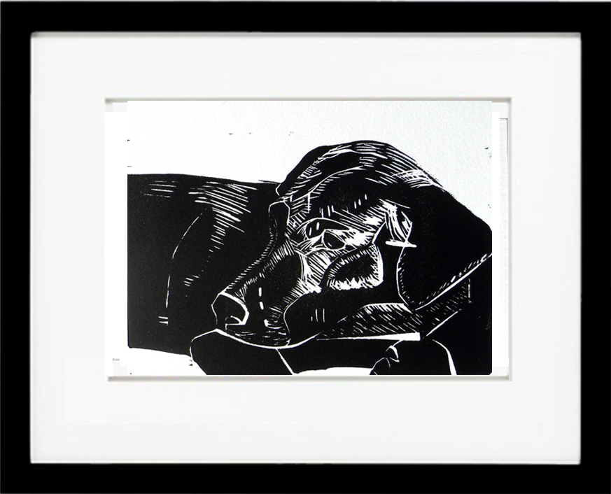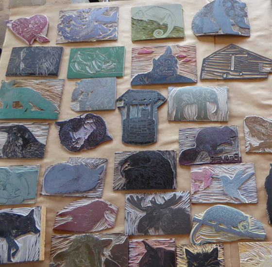Linoleum block hand colored Seagulls by Hilary Lorenz for BBP.
