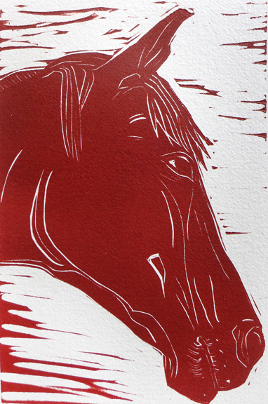 Collage: Linocut printed horse hand cut